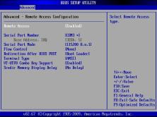 - Configure console redirection in BIOS. Launch the Java-based remote console and enter the BIOS Setup by pressing Delete. This is where we are going to configure console redirection for the install process. Under Advanced -> Remote Access Configuration, set the following: